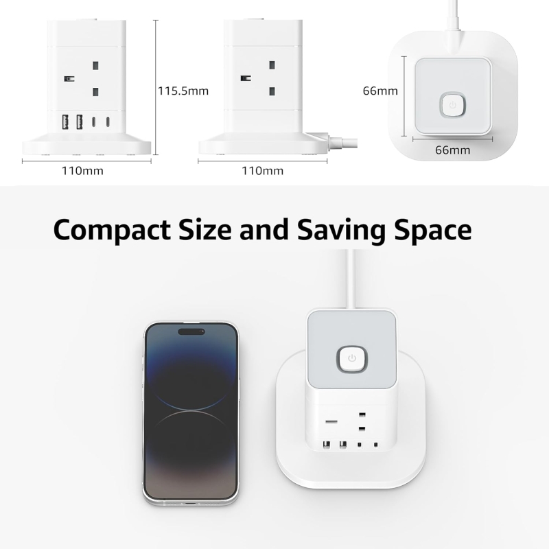 Q4: What is the maximum power rating of this UK tower extension lead?A: The tower power strip is rated at 13A / 250V / 3250W maximum. This makes it suitable for powering multiple high-wattage appliances such as kettles, monitors, PCs, heaters, and gaming consoles at the same time.