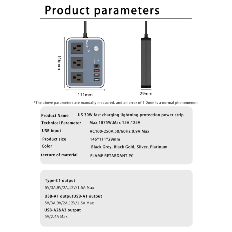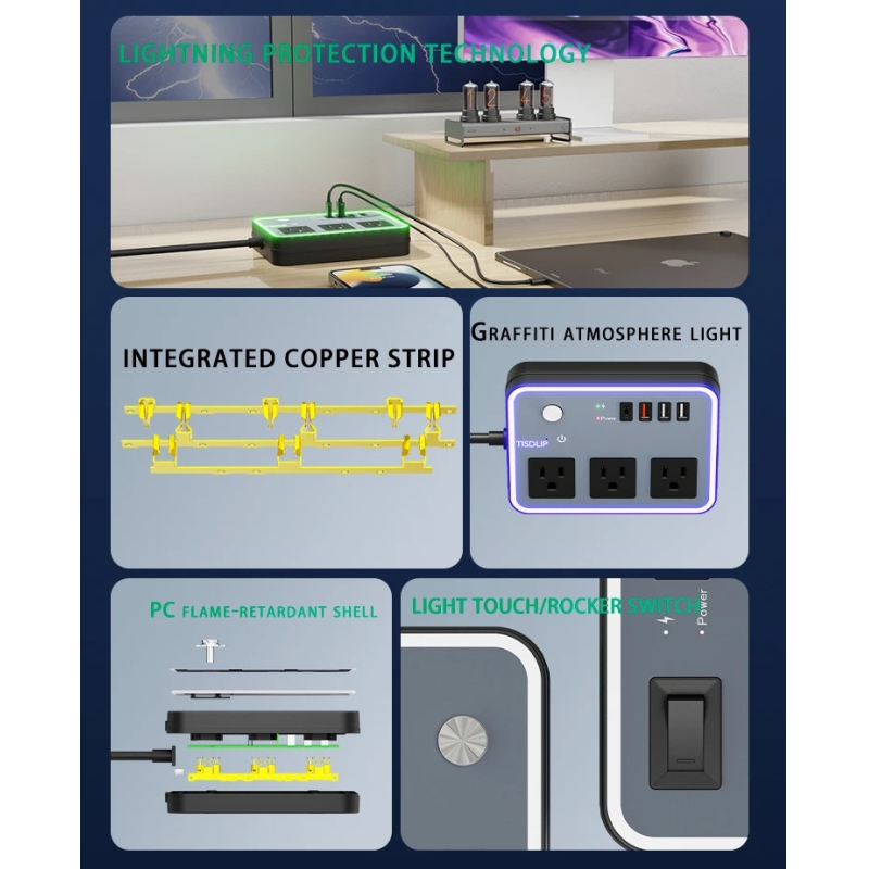 四孔美标插排制造商:20W USB-C 防雷插座,适用于家庭与办公环境