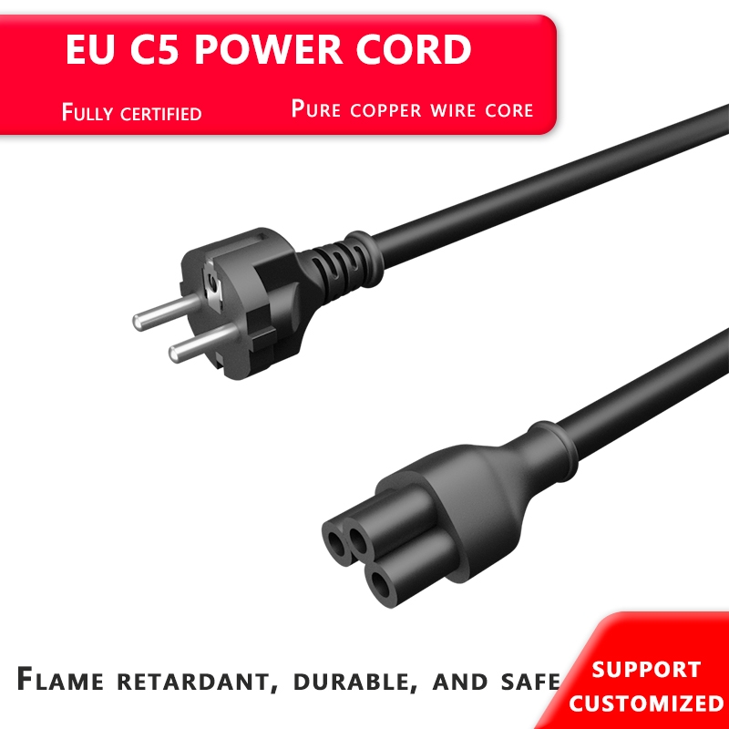 This CEE 7/5 to IEC C5 power cord is designed for European markets, commonly used for laptops, notebooks, and home appliances.