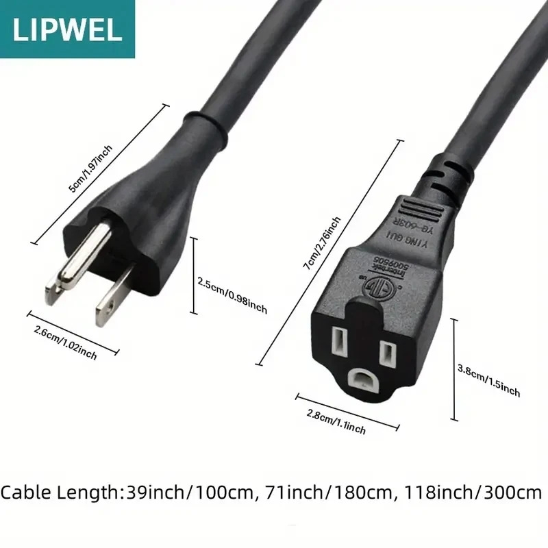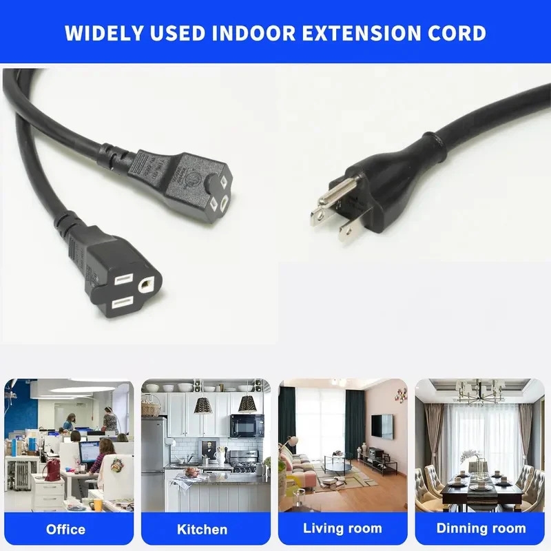 This NEMA 5-15P to NEMA 5-15R extension cord is designed for safe and stable indoor power extension. Built with 16AWG pure copper conductors and durable SJT PVC jacket, it delivers 15A 125V 1625W power capacity for household appliances, office equipment and workshop tools.